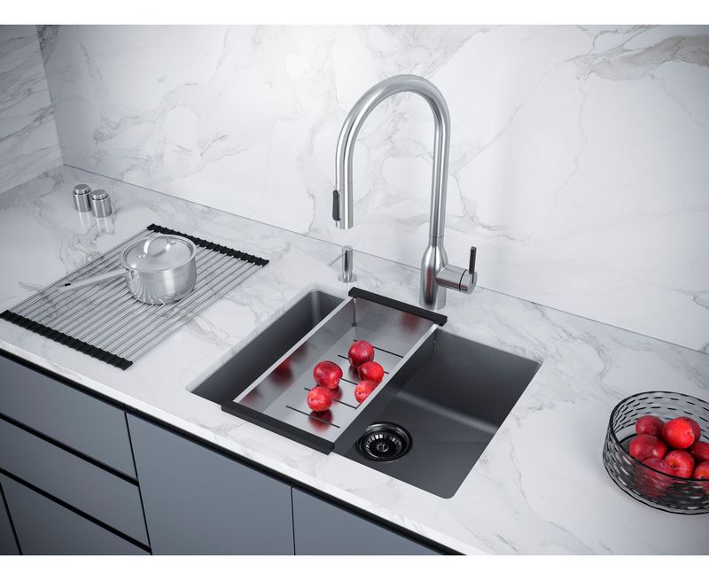 Мойка для кухни Paulmark Lumi 55Uni-Skew 55.5x46 LU55SK-DG, под столешницу, графит