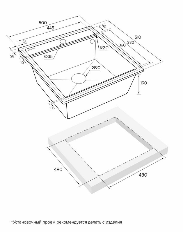 Раковина для кухни Paulmark Stepia 50x51 PM115051-WH, врезная, белый из литьевого кварца IT-GRANIT.Свойства. IT-GRANIT® имеет текстурированную поверхность, без пор с высокими гигиеническими свойствами. Состоит из 80% кварца и 20% акриловой смолы. Поверхность мойки обработана специальным биоцидным составом на основе ионов серебра, устойчива к ударам, царапинам, образованию пятен и обесцвечиванию, устойчив к уф-излучению и воздействию высоких температур. Кухонная мойка Stepia 50x51 см PM115051-WH белый, для врезного монтажа. Изображение и цвет на мониторе могут отличаться от оригинала. Комплектность: