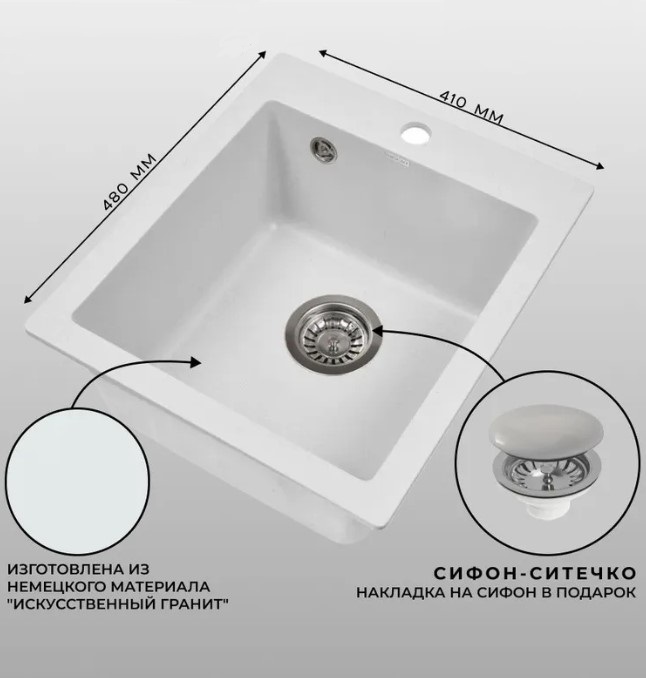 Кухонная мойка Wisent W420-29 41x49 см из искусственного гранита.Производство. Компания Wisent выпускает сантехнику высокого класса с применением передовых немецких технологий. Заводы расположены в Китае и странах СНГ. Качество. Экологически чистые безопасные материалы. Продукция соответствует международным сертификатам. Оптимальное соотношение цены и качества под разные предпочтения. Изображение и цвет на мониторе могут отличаться от оригинала. Комплектность: