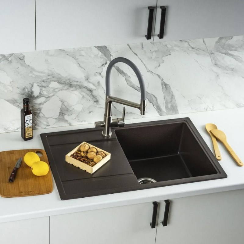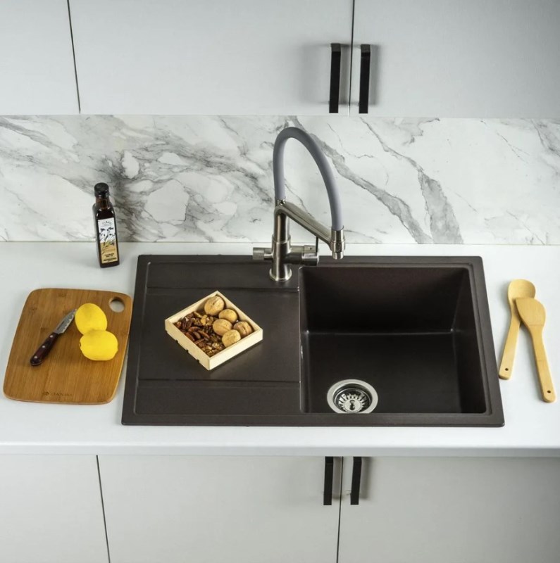 Кухонная мойка Wisent W780-27 78x51 см из искусственного гранита.Производство. Компания Wisent выпускает сантехнику высокого класса с применением передовых немецких технологий. Заводы расположены в Китае и странах СНГ. Качество. Экологически чистые безопасные материалы. Продукция соответствует международным сертификатам. Оптимальное соотношение цены и качества под разные предпочтения. Изображение и цвет на мониторе могут отличаться от оригинала. Комплектность: