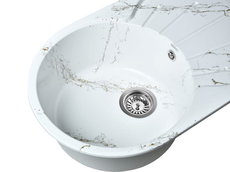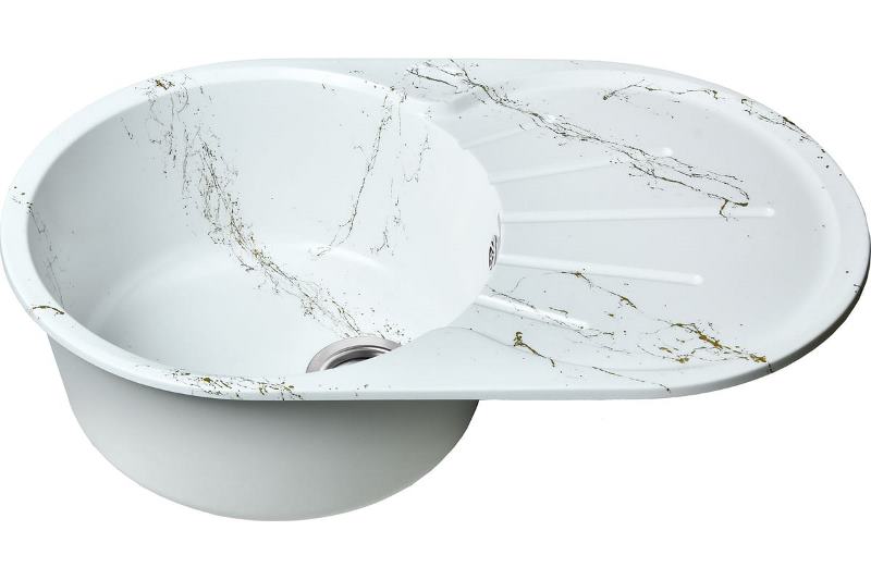 Мойка для кухни Wisent WA02-13 73.5x45, врезная, мрамор бело-золотой. Все характеристики |