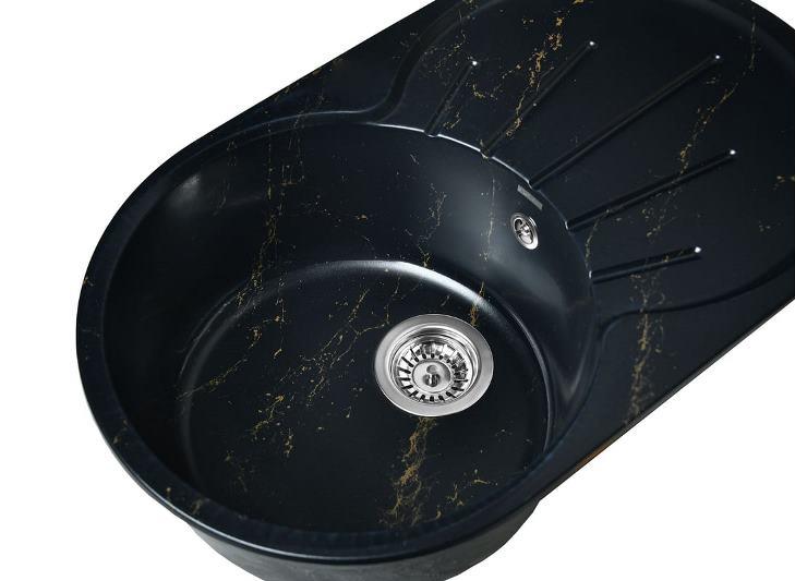 Мойка для кухни Wisent WA02-14 73.5x45, врезная, мрамор черно-золотой. Все характеристики |