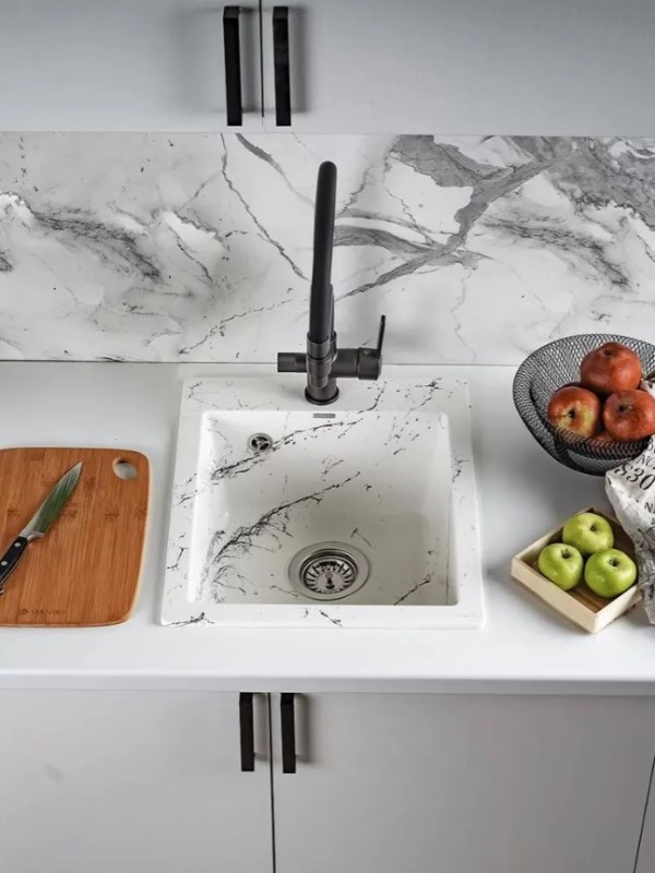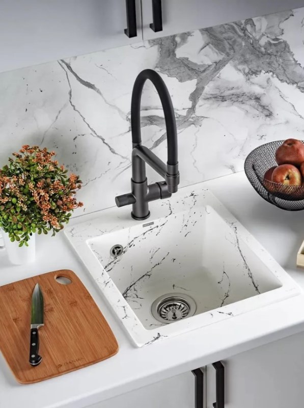 Мойка для кухни Wisent WA10-12 48x41, врезная, мрамор бело-черный. Все характеристики |