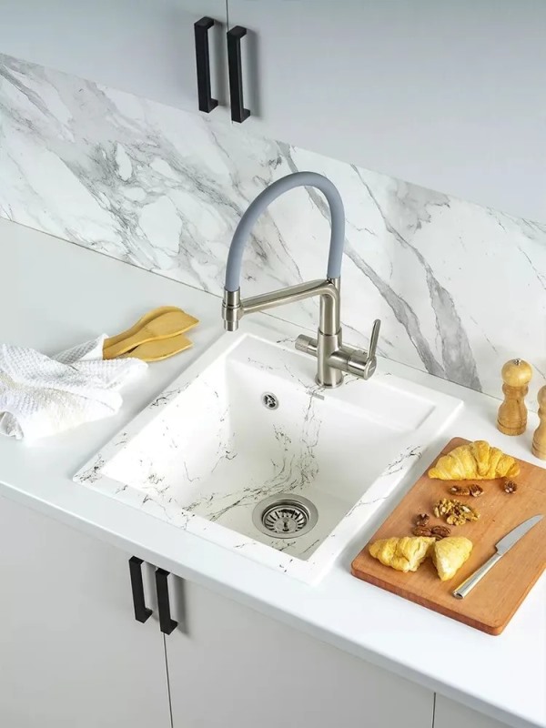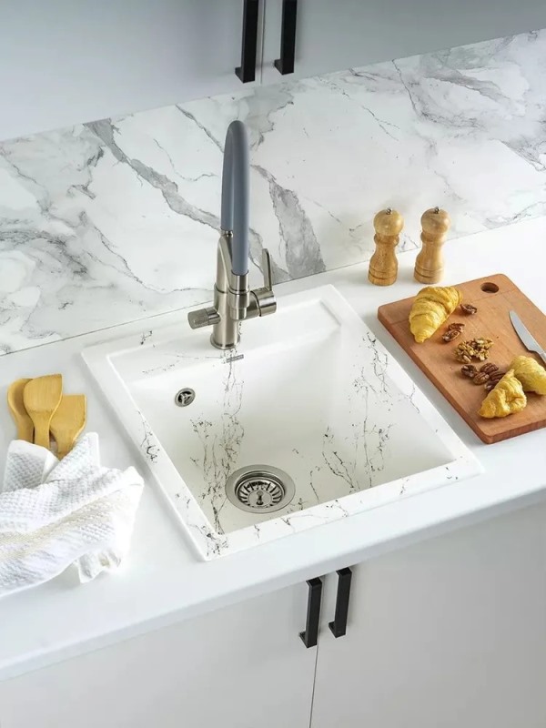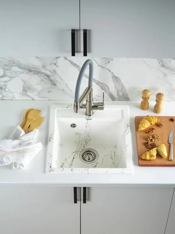 Мойка для кухни Wisent WA45-13 45x50, врезная, мрамор бело-золотой. Все характеристики |