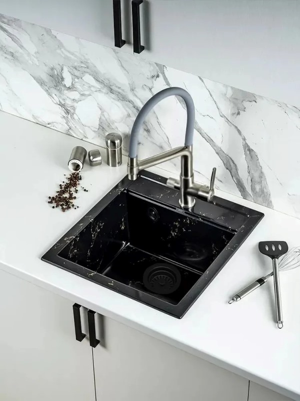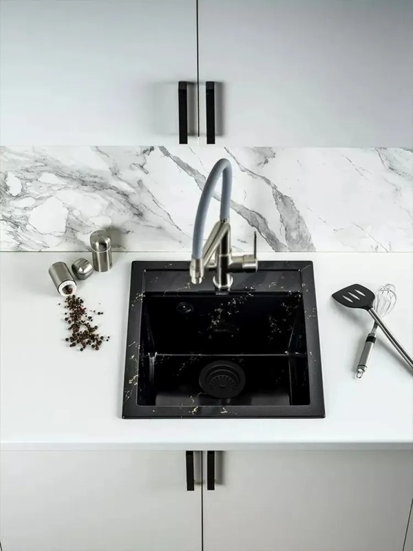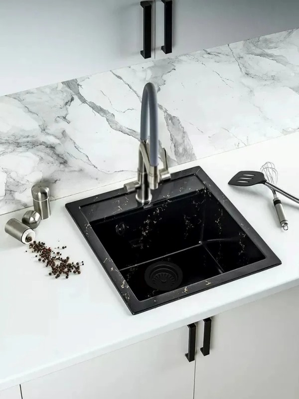Мойка для кухни Wisent WA45-14 45x50, врезная, мрамор черно-золотой. Все характеристики |