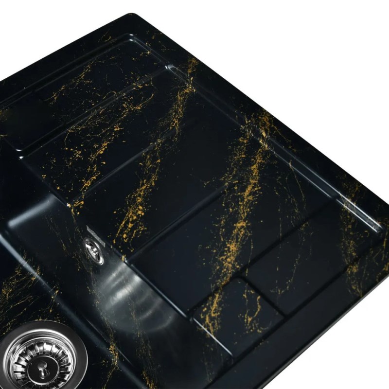 Мойка для кухни Wisent WB22-14 65x50, врезная, мрамор черно-золотой. Все характеристики |