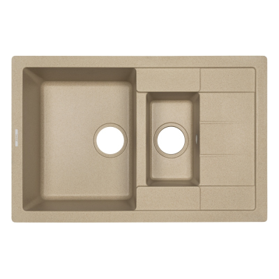 Кухонная мойка ZorG Luka 78-2 78x50, врезная, песчаный берег Luka 78-2 SAND изготовлена из настоящей гранитной крошки, связанной в массив с помощью экологически безопасного высококачественно акрила.Свойства материала. Мойка на 80% состоит из натуральной гранитной крошки строго определенного размера "зерна". Оставшиеся 20% приходятся на связующие материалы - современные безопасные полимеры. Гранитные мойки характеризуется высокой прочностью, благодаря своему составу. Эластичные связующие смолы надежно соединяют все компоненты, что предупреждает появление трещин на поверхности мойки. Гранитные мойки практически бесшумны. Камень легко чистится, гигиеничен и неприхотлив. На гранитной поверхности не образуется плесень или грибок, не остаются следы от посуды и царапины. Экологически чистый материал безопасен для использования в домашних условиях, не впитывает запахи. Каменная текстура хорошо переносит перепады температур, контакт с горячими предметами и не воспринимает содержащиеся в продуктах кислоты и красители. Цвет. Цвет мойки ZorG Luka 78-2 78x50 см песчаный берег - бежевый. В ходе производства изделия используются специальные светостойкие красящие вещества. Это дает возможность надолго сохранить мойки из камня в первоначальном состоянии. Они не теряют оттенок под действием чистящих средств. Качество. Компания ZORG SANITARY a.s. выпускает гранитные мойки, качество которых соответствует высокому европейскому уровню и отмечено знаком «100% eco quality». Технология выпуска моек эксклюзивна и запатентована как ноу-хау, она предполагает применение только качественных материалов, прошедших предварительную проверку на соответствие. Дизайн. Ударопрочные стильные мойки из камня гармонично впишутся в кухонное пространство. Гранит исключительно прочен и выглядит дорого и роскошно. Особенно стильно смотрятся каменные конструкции в обрамлении гранитных или мраморных столешниц. Установка. Мойка ZorG Luka 78-2 78x50 предназначена для монтажа в базу шириной 50 см. Длина основной чаши-42.5 см, ширина -34 см, длина дополнительной чаши-28 см, ширина-16 см, глубина-13 см. При установке мойки из камня ее можно подвергать всевозможным воздействиям. При необходимости можно делать отверстия, пилить и сверлить, не беспокоясь о появлении микротрещин. Изображение и цвет на мониторе могут отличаться от оригинала. Комплектность: