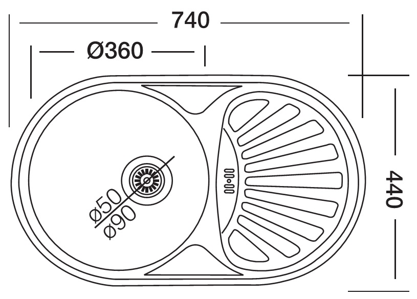 Кухонная мойка Kromevye Rondo EC 166 D 74x44, врезная. Монтаж в базу 50 см. Материал-нержавеющая сталь "декор" толщиной 0.6 мм. Изображение и цвет на мониторе могут отличаться от оригинала. Комплектность: