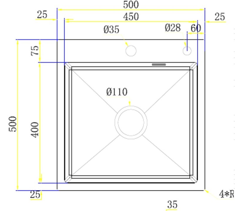 Мойка для кухни Blantek FS-5050S Brushed ECO 50x50, врезная, нерж. сталь. Все характеристики |