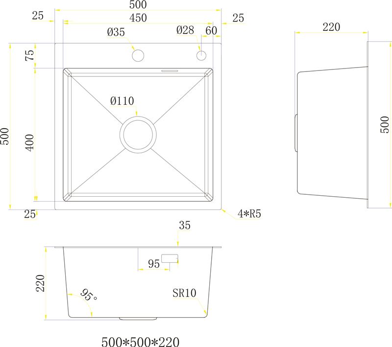 Мойка для кухни Blantek LS-5050B Nano black 50x50, врезная, ворон. сталь. Все характеристики |