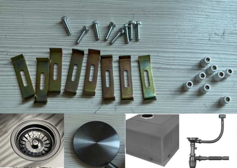 В комплекте: сливная арматура, вентиль корзинчатый, крепежи, накладка на сливное отверстие в цвет мойки. |