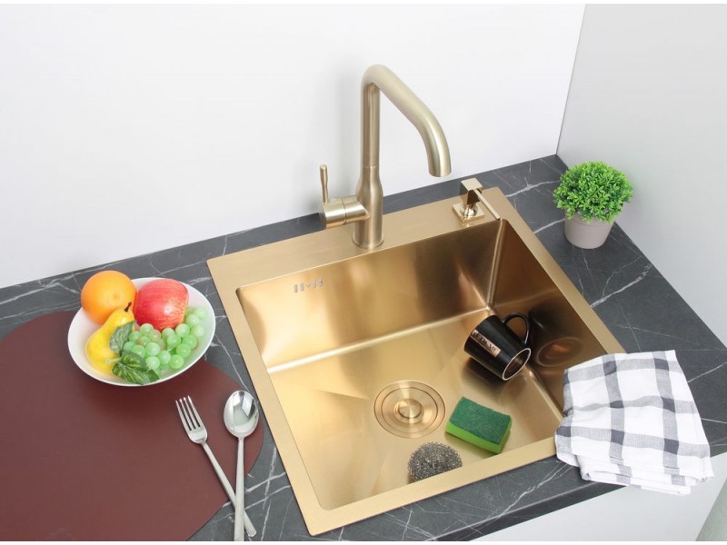 Мойка для кухни Gerhans 50x50 K35050G, врезная, PVD золото. Все характеристики |