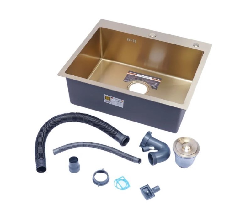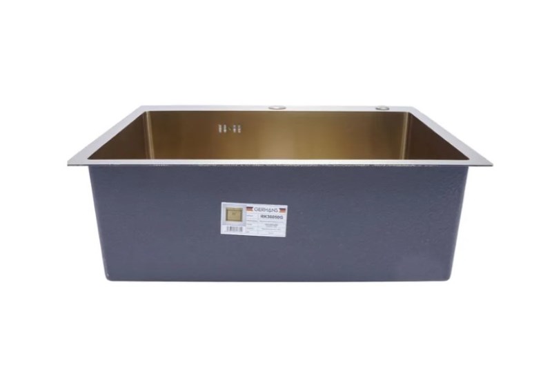 Кухонная мойка Gerhans 60x50 см K36050G из нержавеющей стали.Свойства. Нержавеющая сталь SUS304. Покрытие-PVD, цвет-золотой сатин. Отверстие под смеситель и дозатор. Шумопоглощающее покрытие на внешней стороне. Устойчивость к воздействию высоких температур, к образованию ржавчины, деформации. Мойка легка в уходе и чистке. Производство. Компания Gerhans выпускает сантехнику высокого класса с применением передовых немецких технологий. Заводы расположены в Китае и странах СНГ. Качество. Проверенные материалы и комплектующие люксовых производителей соответствуют мировым стандартам DVGW, NSF, ACS и WARS. Актуальные трендовые решения. Доступное европейское качество в ванную комнату. Изображение и цвет на мониторе могут отличаться от оригинала. Комплектность:
