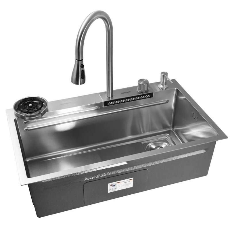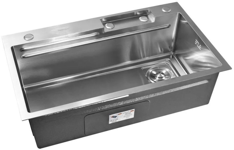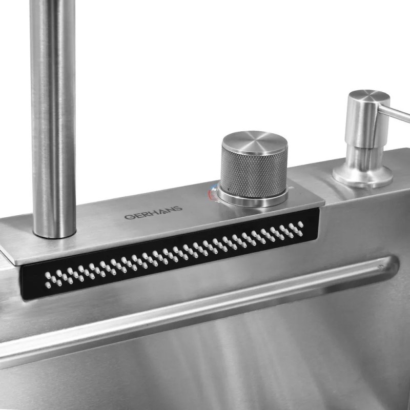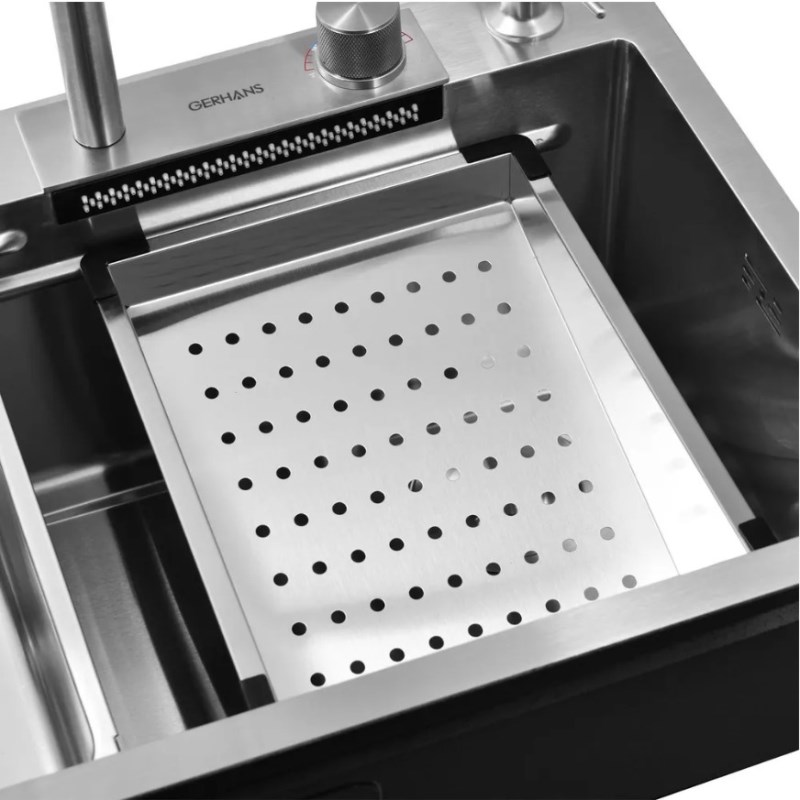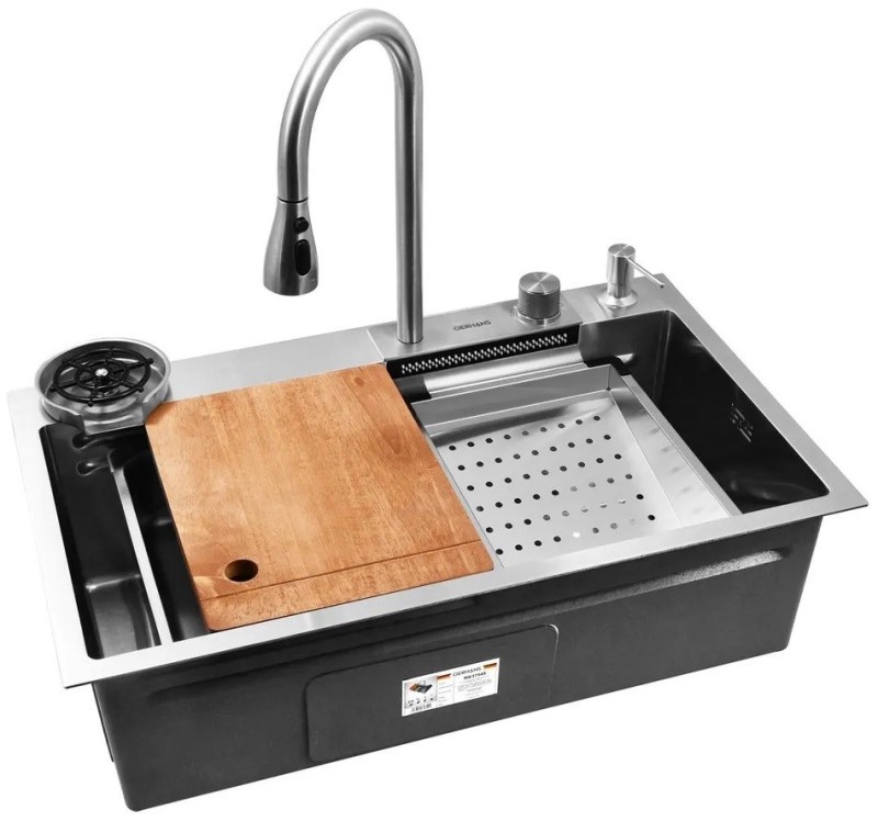 Кухонная мойка Gerhans 75x45 см K37545 из нержавеющей стали.Свойства. Многофункциональная мойка из нержавеющей стали SUS304. Смеситель с выдвижной лейкой и режимом каскадного водопада. Ринзер для мытья стаканов и кружек. Чаша для разморозки. Коландер. Деревянная разделочная доска. Врезной дозатор для мыла. Сифон с гибкой подводкой. Шумопоглощающее покрытие на внешней стороне. Устойчивость к воздействию высоких температур, к образованию ржавчины, деформации. Мойка легка в уходе и чистке. Производство. Компания Gerhans выпускает сантехнику высокого класса с применением передовых немецких технологий. Заводы расположены в Китае и странах СНГ. Качество. Проверенные материалы и комплектующие люксовых производителей соответствуют мировым стандартам DVGW, NSF, ACS и WARS. Актуальные трендовые решения. Доступное европейское качество в ванную комнату. Изображение и цвет на мониторе могут отличаться от оригинала. Комплектность:
