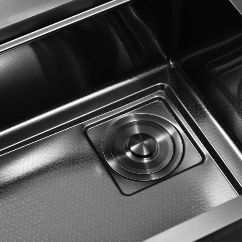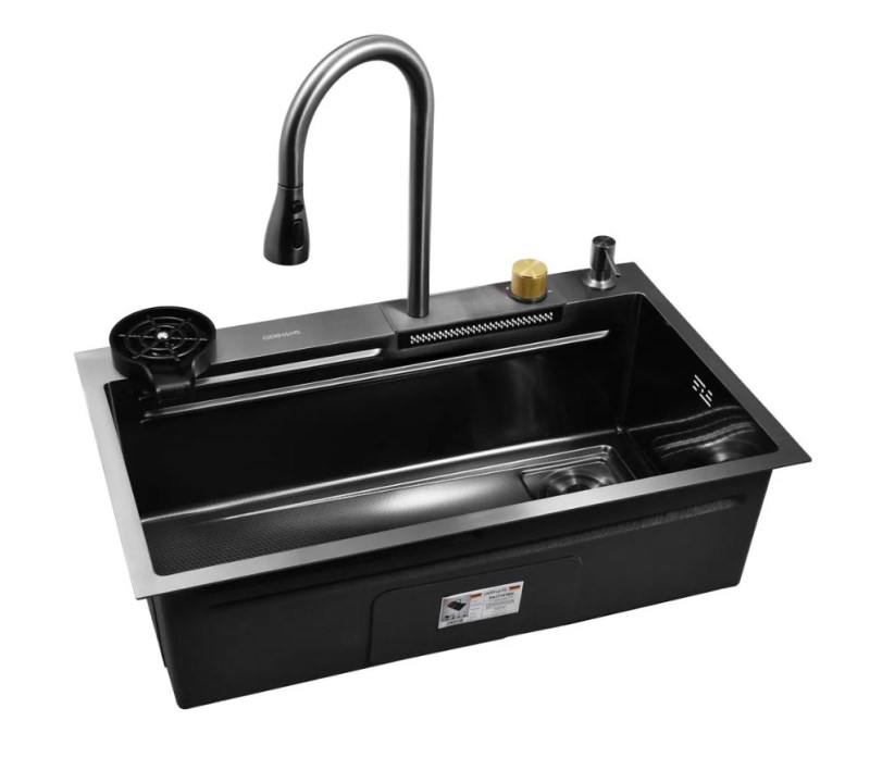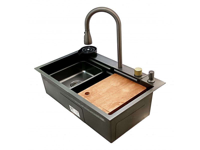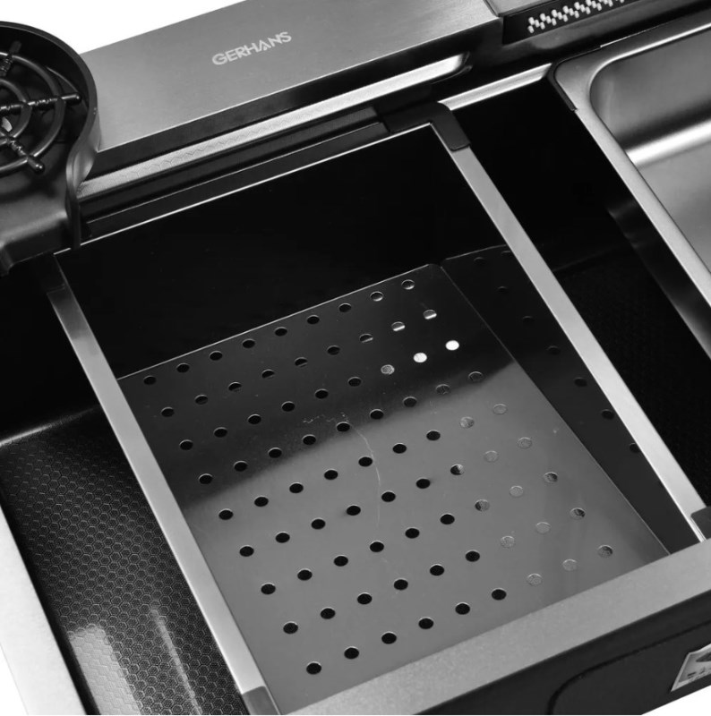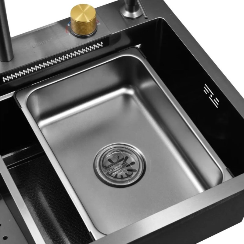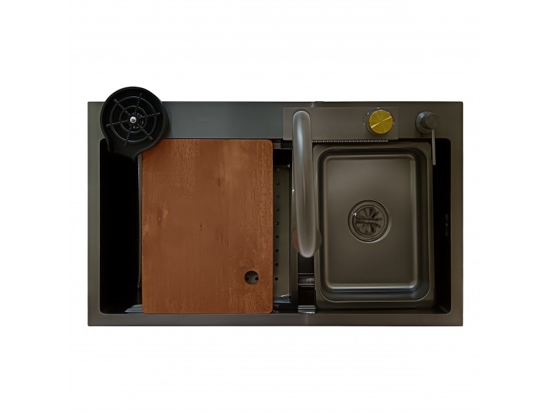 Кухонная мойка Gerhans 75x45 см K37545BD из нержавеющей стали.Свойства. Многофункциональная мойка из нержавеющей стали SUS304. Покрытие PVD, цвет-графит, текстура-соты. Смеситель с выдвижной лейкой и режимом каскадного водопада. Ринзер для мытья стаканов и кружек. Чаша для разморозки. Коландер. Деревянная разделочная доска. Врезной дозатор для мыла. Сифон с гибкой подводкой. Шумопоглощающее покрытие на внешней стороне. Устойчивость к воздействию высоких температур, к образованию ржавчины, деформации. Мойка легка в уходе и чистке. Производство. Компания Gerhans выпускает сантехнику высокого класса с применением передовых немецких технологий. Заводы расположены в Китае и странах СНГ. Качество. Проверенные материалы и комплектующие люксовых производителей соответствуют мировым стандартам DVGW, NSF, ACS и WARS. Актуальные трендовые решения. Доступное европейское качество в ванную комнату. Изображение и цвет на мониторе могут отличаться от оригинала. Комплектность: