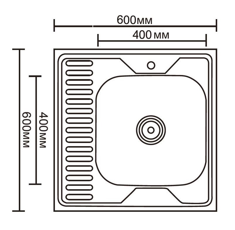 Мойка для кухни Ledeme 60x60 L76060-R, накладная, правая. Все характеристики |