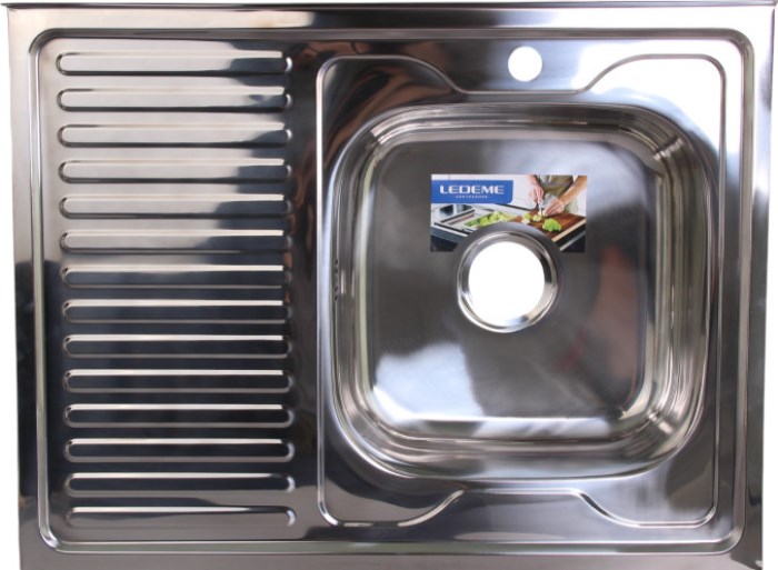 Мойка для кухни Ledeme L98060-6R, 80x60, 98060-6R, накладная, правая из нержавеющей стали.Свойства. Нержавеющая сталь толщиной 0.6 мм. Поверхность полированная. Отверстие под смеситель. Мойка справа, полка слева. Антишумовая резиновая подушка снаружи на дне мойки, уменьшает вибрацию. Мойка легка в уходе и чистке. Накладная раковина L98060-6R 80x60 см 98060-6R правая для кухни. Производство. Компания Ledeme представлена на рынке сантехники для ванных комнат и кухонь более 25 лет. Занимая лидирующие позиции на рынке, постоянно совершенствуется и идет в ногу со временем. Фабрика использует современные программные комплексы для проектирования и автоматизированное оборудование для производства изделий. Качество. Для сплавов используются только металлы высшего класса А, что делает продукцию надежной и безопасной для здоровья. Каждая единица проходит все этапы проверки, включая тестирование высоким давлением на выходе. Изделия Ледеме соответствуют европейским стандартам качества CE, американским UL и международным ISO. Оптимальное соотношение цены и качества под разные предпочтения. Изображение и цвет на мониторе могут отличаться от оригинала. Комплектность: