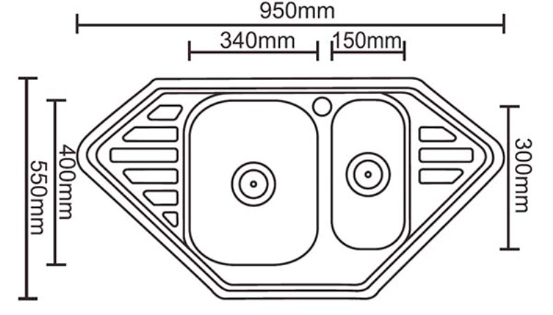 Мойка для кухни Ledeme 95x50 L69550B, врезная, угловая, декор. Все характеристики |