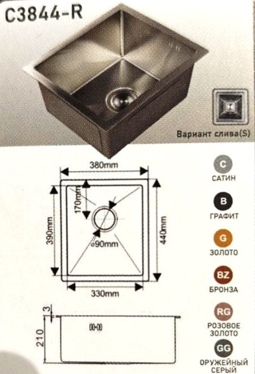 Мойка для кухни Marrbaxx C3844-MR 38x44, врезная, сатин. Все характеристики |