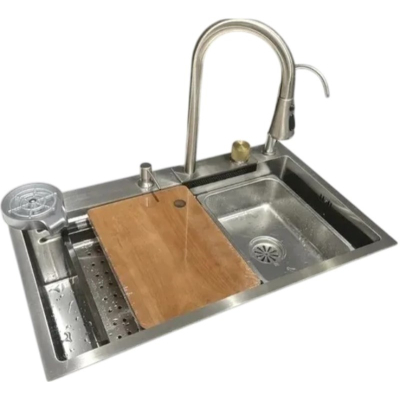 В комплекте: смеситель, вентиль для подачи питьевой воды, коландер, коландер с перфорацией, ринзер, доска разделочная, сифон. |