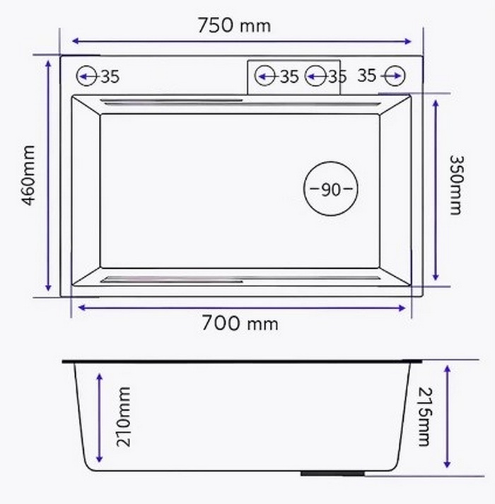 Мойка для кухни Marrbaxx C7546-DMR 75x46, врезная, со смесителем, декор, сатин. Все характеристики |