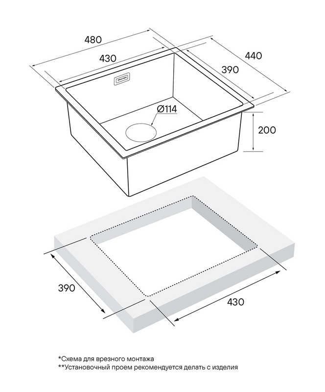 Мойка для кухни Paulmark Aller 48 Uni 48x44 PM804844-GM, под столешницу, воронен.сталь. Все характеристики |