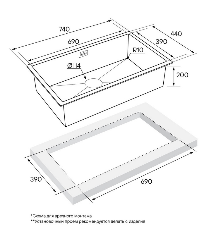 Раковина для кухни Paulmark Aller 74 Uni 74x44 PM807444-BS под столешницу из нержавеющей стали.Свойства. Нержавеющая сталь AISI 304 легирована 18% хрома и 8% никеля. Мойка имеет шумопоглощающее покрытие Stille® на внешней стороне чаши, устойчива к воздействию высоких температур, к образованию ржавчины, деформации, не задерживает загрязнения на поверхности, легка в уходе и чистке. Универсальный монтаж: вровень со столешницей, на столешницу, под столешницу. Изображение и цвет на мониторе могут отличаться от оригинала. Комплектность: