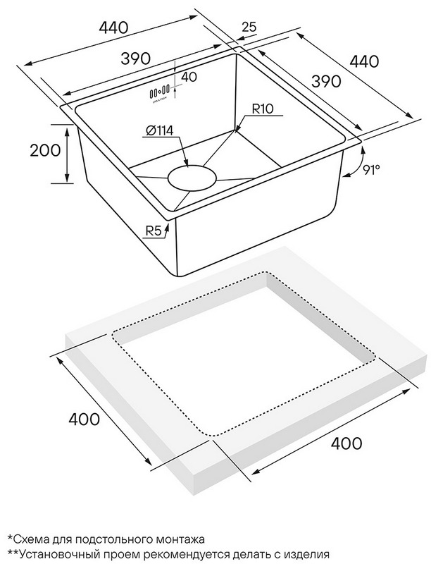 Мойка для кухни Paulmark Gerberg 44 Uni 44x44 PM254444-BG, под столешницу, брашир. золото. Все характеристики |