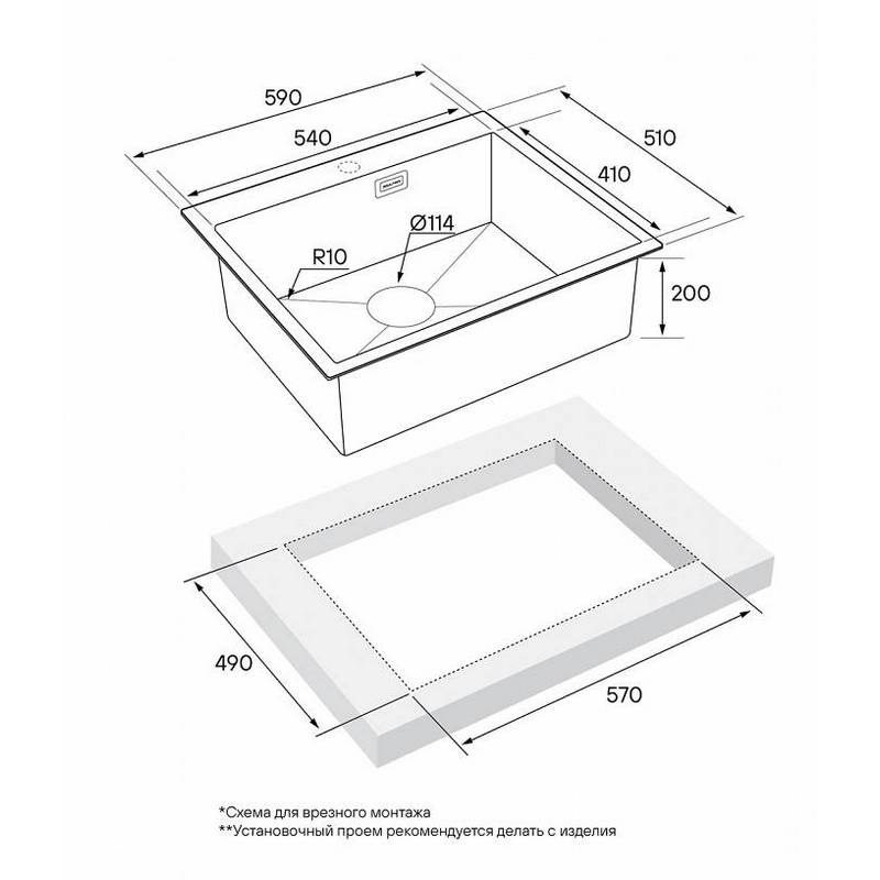 Мойка для кухни Paulmark Kroner 59F 59x51 PM225951-BSR, правая, врезная, брашир. нерж.сталь