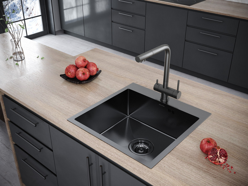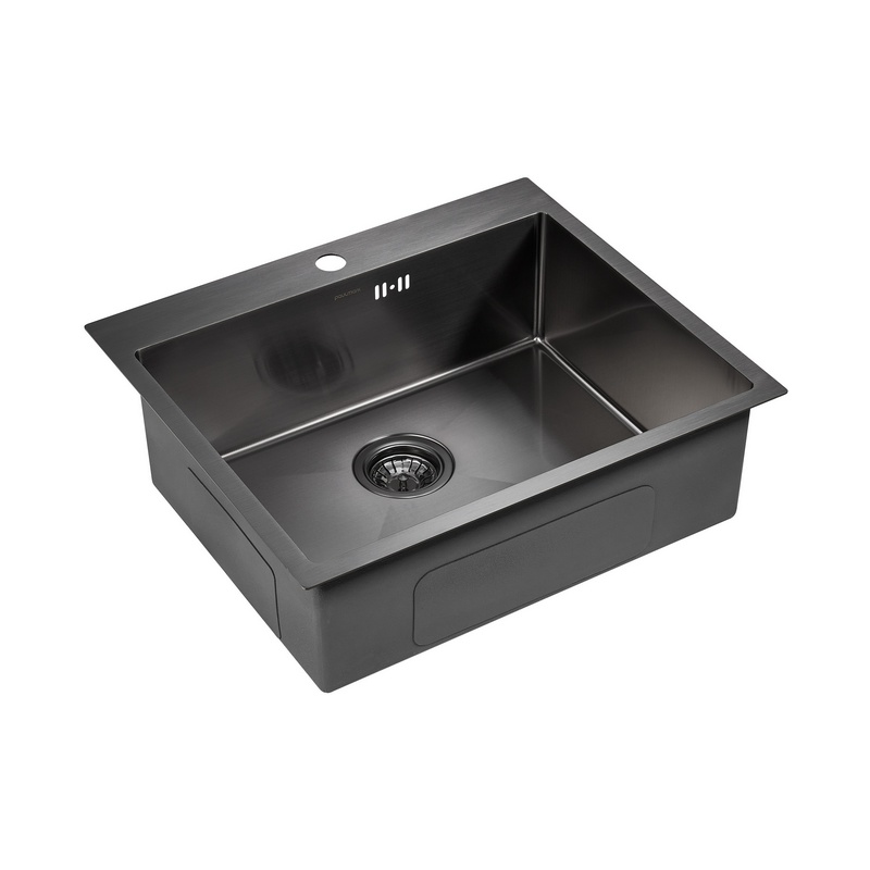 Мойка для кухни Paulmark Kroner 59F 59x51 PM225951-GMR, правая, врезная, вороненая сталь