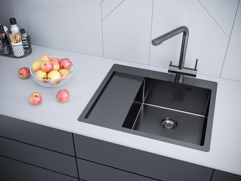 Мойка для кухни Paulmark Kroner 59F 59x51 PM225951-GML, левая, врезная, вороненая сталь