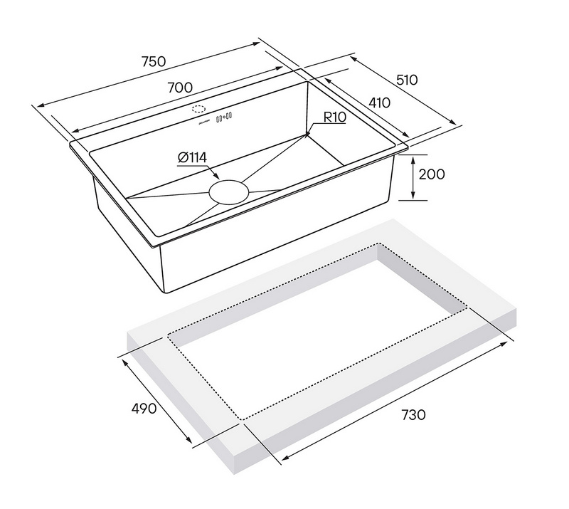 Мойка для кухни Paulmark Kroner 59F 59x51 PM225951-BSR, правая, врезная, брашир. нерж.сталь