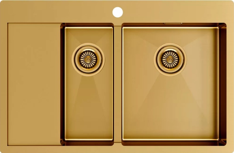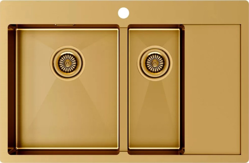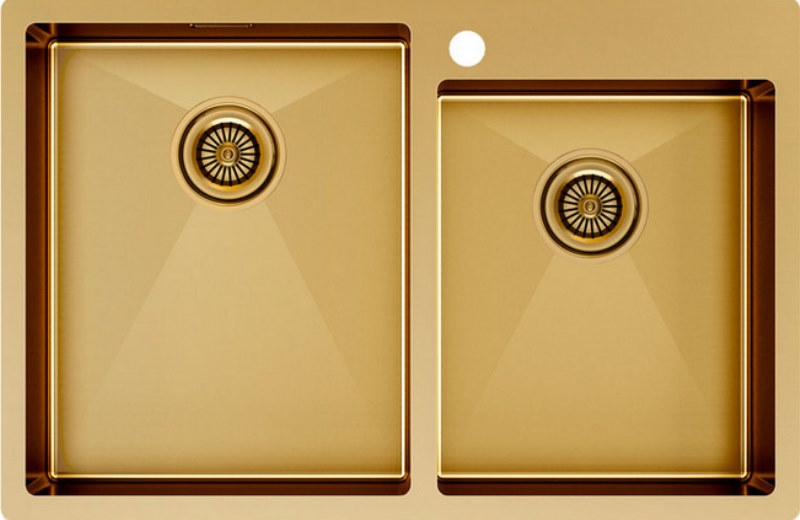 Мойка для кухни Paulmark Kroner 78/2SF 78x51 PM227851-GMR, левая, врезная, брашир. золото