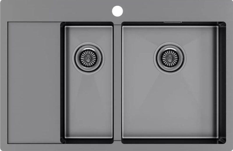 Мойка для кухни Paulmark Kroner 78/2SF 78x51 PM227851-GML, левая, врезная, вороненая сталь