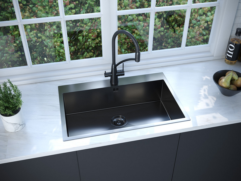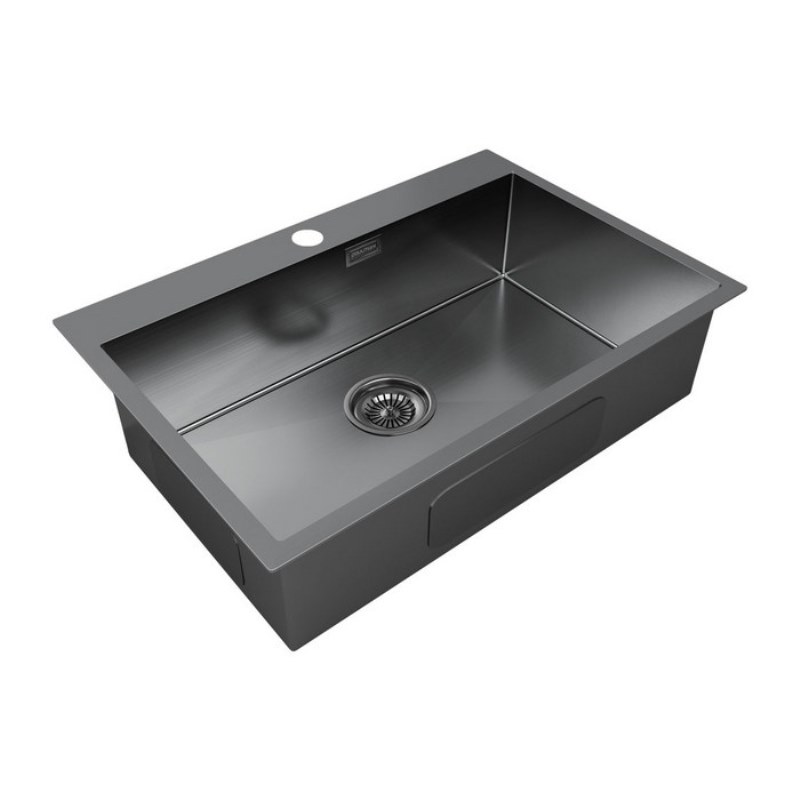 Мойка для кухни Paulmark Kroner 78F 78x51 PM217851-GMR, правая, врезная, вороненая сталь