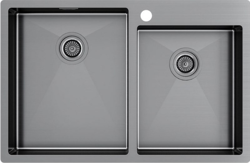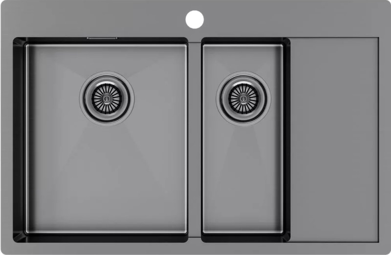 Мойка для кухни Paulmark Kroner 78/2SF 78x51 PM227851-GMR, правая, врезная, вороненая сталь