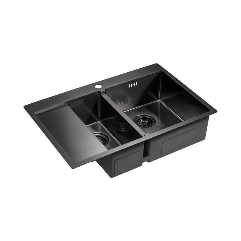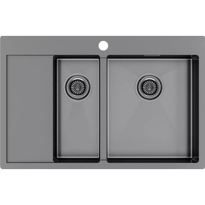 Мойка для кухни Paulmark Kroner 78/2SF 78x51 PM227851-GML, левая, врезная, вороненая сталь