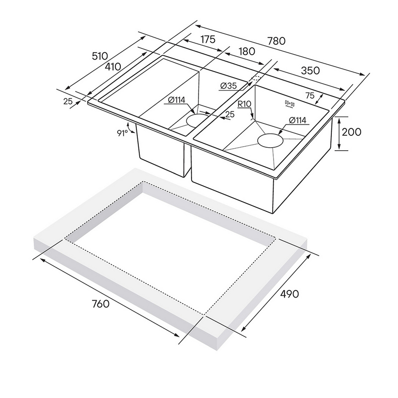 Мойка для кухни Paulmark Kroner 78/2S 78x51 PM237851-GM, врезная, вороненая сталь