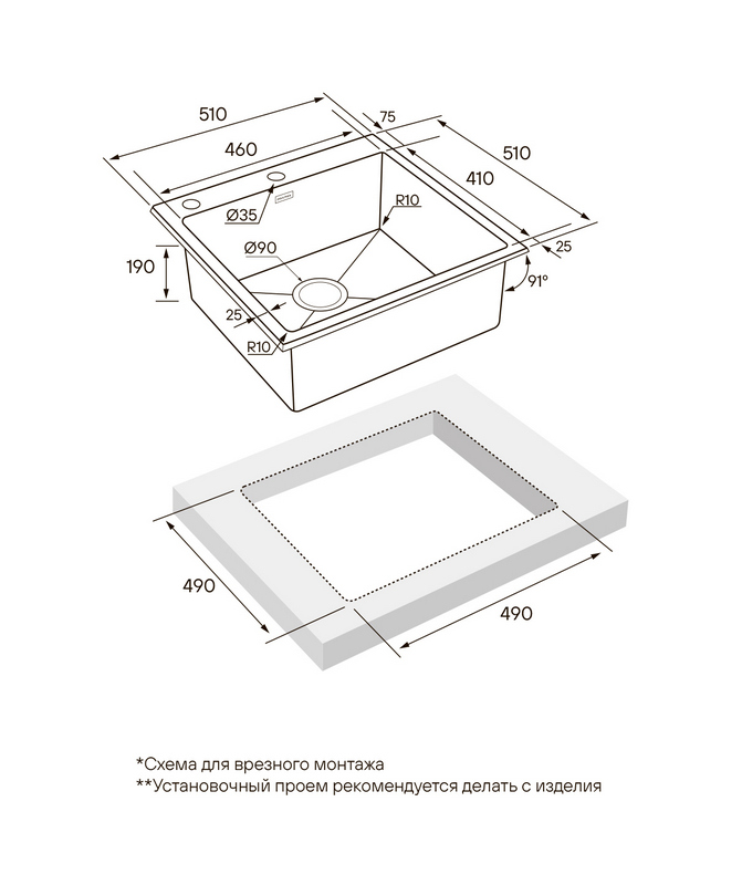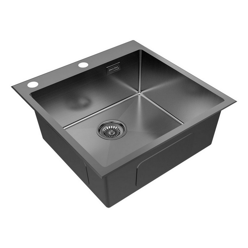 Мойка для кухни Paulmark Kroner-Edge 51 51x51 PM775151-GM, врезная, вороненая сталь. Все характеристики |