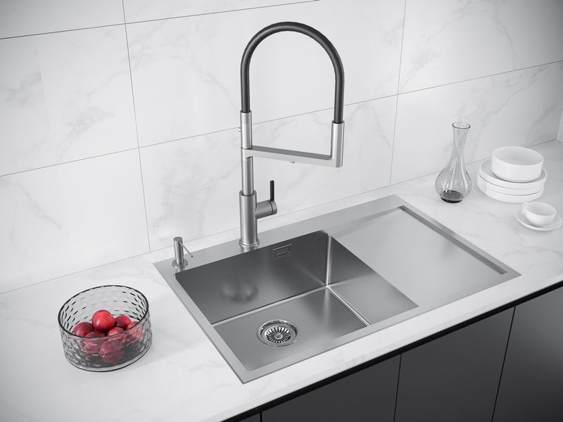 Раковина для кухни Paulmark Kroner-Edge 78F 78x51 PM777851-BSL врезная, левая из нержавеющей стали.Свойства. Нержавеющая сталь AISI 304 легирована 18% хрома и 8% никеля. Мойка имеет шумопоглощающее покрытие Stille® на внешней стороне чаши, устойчива к воздействию высоких температур, к образованию ржавчины, деформации, не задерживает загрязнения на поверхности, легка в уходе и чистке. Мойка слева, крыло справа. Изображение и цвет на мониторе могут отличаться от оригинала. Комплектность: