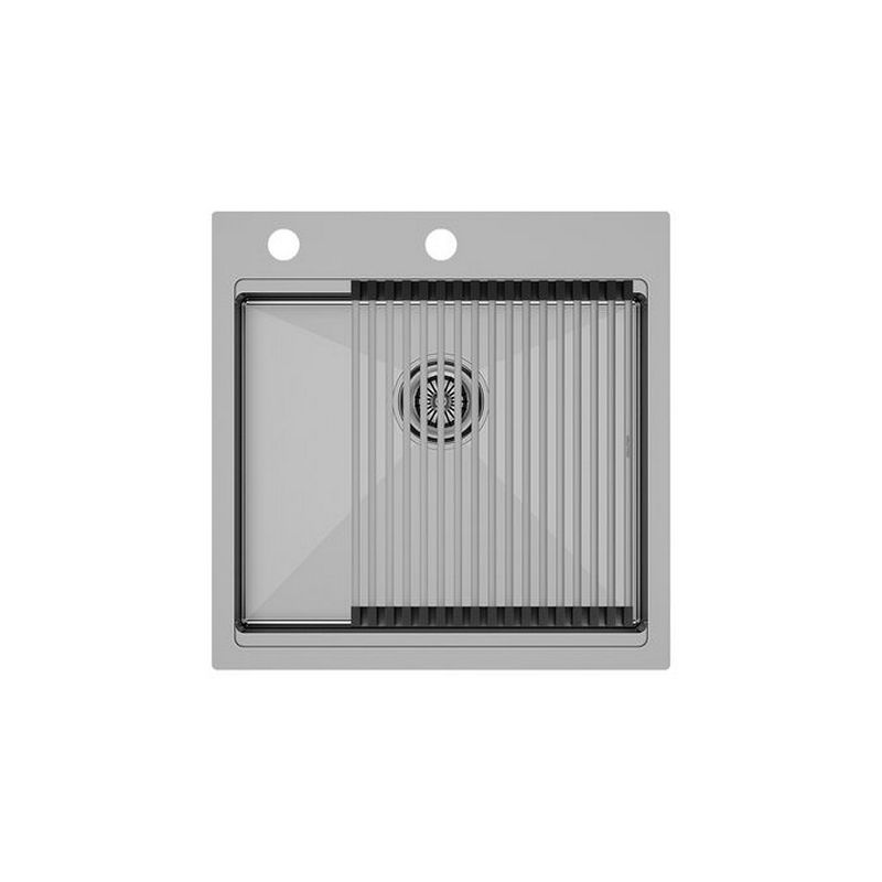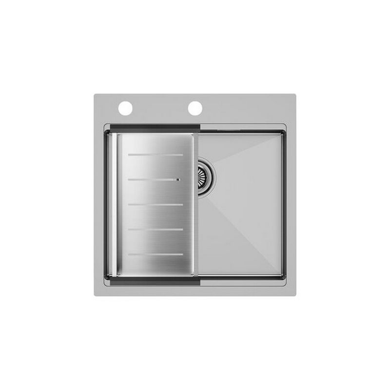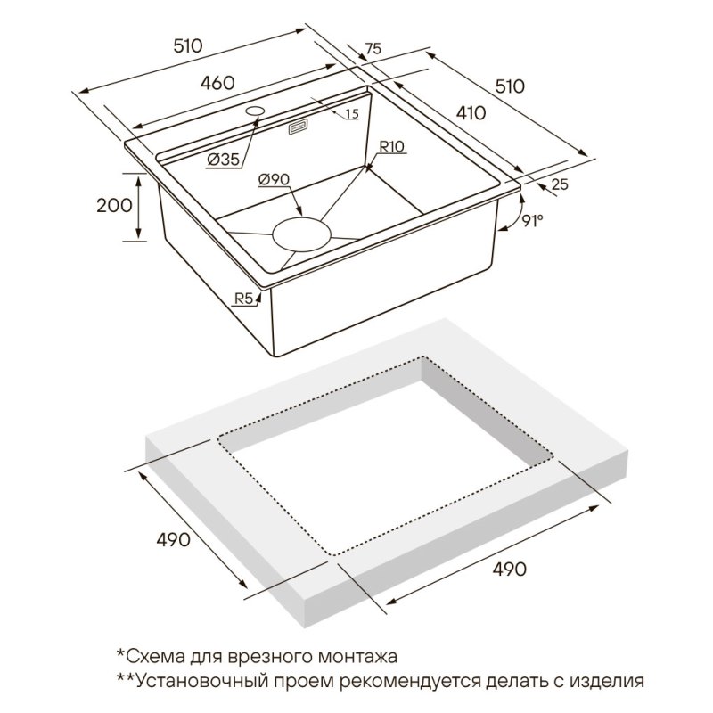 Раковина для кухни Paulmark Kroner-Pro 51 51x51 PM705151-BS врезная из нержавеющей стали.Свойства. Нержавеющая сталь AISI 304 легирована 18% хрома и 8% никеля. Мойка имеет шумопоглощающее покрытие Stille® на внешней стороне чаши, устойчива к воздействию высоких температур, к образованию ржавчины, деформации, не задерживает загрязнения на поверхности, легка в уходе и чистке. Интегрированный уступ в чаше мойки для установки коландера и ролл-мата. Площадка под смеситель толщиной 3 мм с двумя отверстиями D35 мм для установки смесителя и дозатора/кнопки измельчителя. 2 вида монтажа: врезная на столешницу, врезная вровень со столешницей. Изображение и цвет на мониторе могут отличаться от оригинала. Комплектность:
