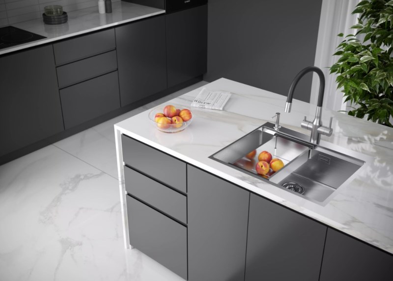 В комплекте: сифон, крепления.Дополнительно комплектуется: смеситель, дозатор, ролл-мат, коландер. |