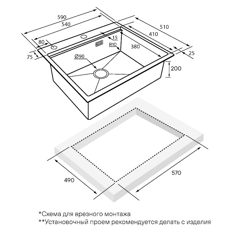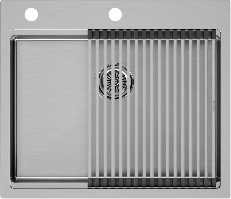 Раковина для кухни Paulmark Kroner-Pro 59 59x51 PM705951-BS врезная из нержавеющей стали.Свойства. Нержавеющая сталь AISI 304 легирована 18% хрома и 8% никеля. Мойка имеет шумопоглощающее покрытие Stille® на внешней стороне чаши, устойчива к воздействию высоких температур, к образованию ржавчины, деформации, не задерживает загрязнения на поверхности, легка в уходе и чистке. Интегрированный уступ в чаше мойки для установки коландера и ролл-мата. Площадка под смеситель толщиной 3 мм с двумя отверстиями D35 мм для установки смесителя и дозатора/кнопки измельчителя. 2 вида монтажа: врезная на столешницу, врезная вровень со столешницей. Изображение и цвет на мониторе могут отличаться от оригинала. Комплектность: