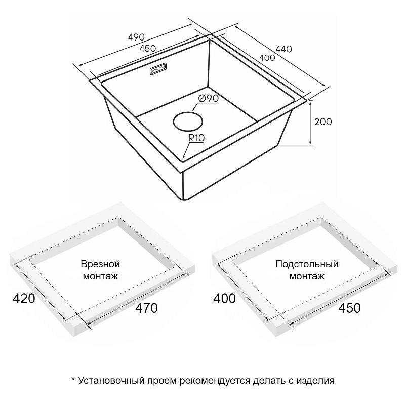 Мойка для кухни Paulmark Lassan 49 Uni 49x44 LA49-MBN, под столешницу, черный матовый. Все характеристики |