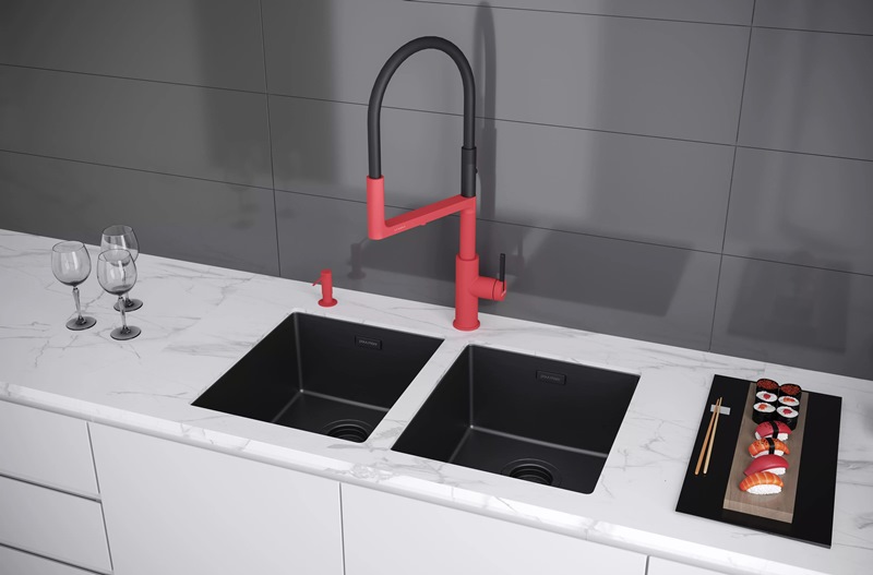 Мойка для кухни Paulmark Next 69/2S Uni 69x44 PM226944-GML, левая, под столешницу, вороненая сталь