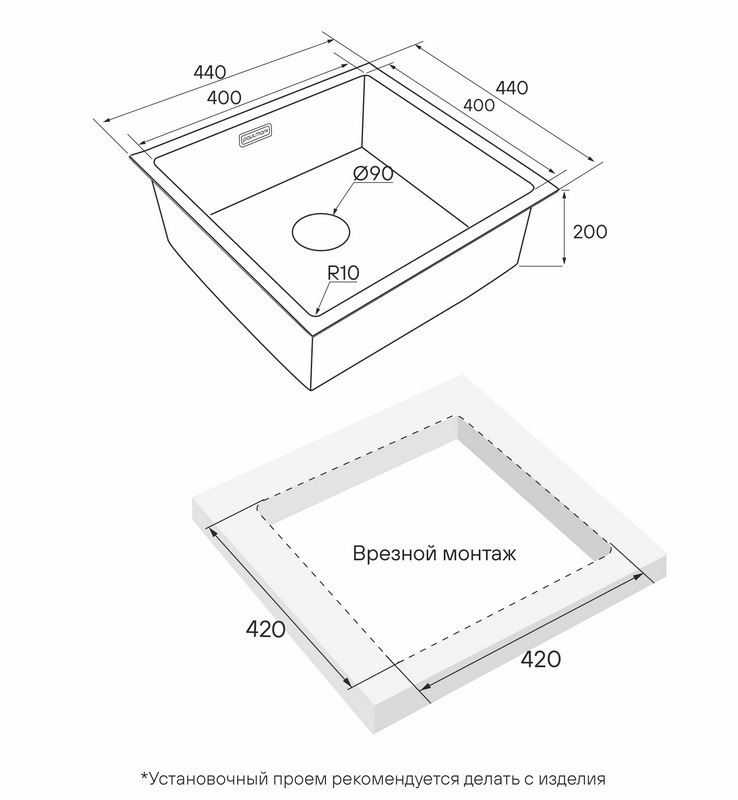 Мойка для кухни Paulmark Next 44 Uni 44x44 PM214444-GM, под столешницу, вороненая сталь