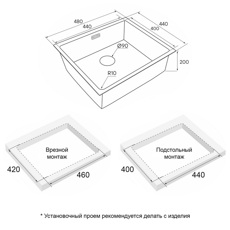 Мойка для кухни Paulmark Next 44 Uni 44x44 PM214444-GM, под столешницу, вороненая сталь