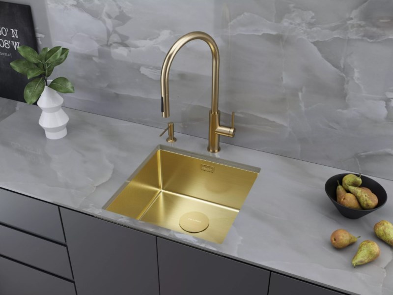 Мойка для кухни Paulmark Next 44 Uni 44x44 PM214444-BG, под столешницу, браш. золото