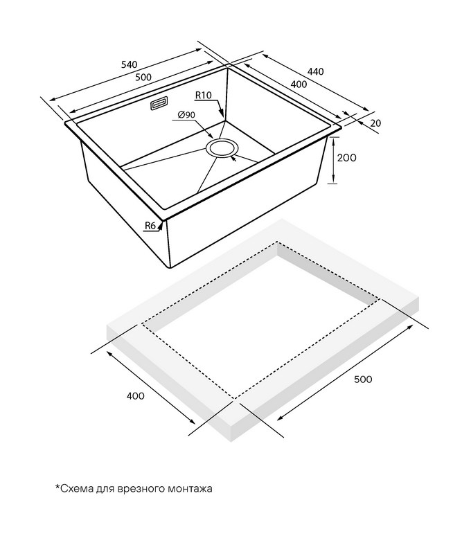 Мойка для кухни Paulmark Next 54x44 PM215444-BS, под столешницу, нержавеющая сталь