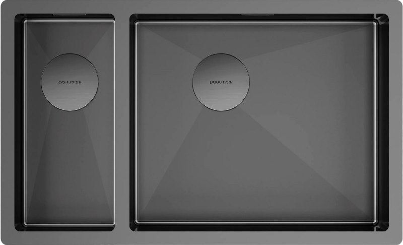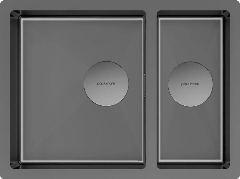 Мойка для кухни Paulmark Next 69/2S Uni 69x44 PM226944-GML, левая, под столешницу, вороненая сталь
